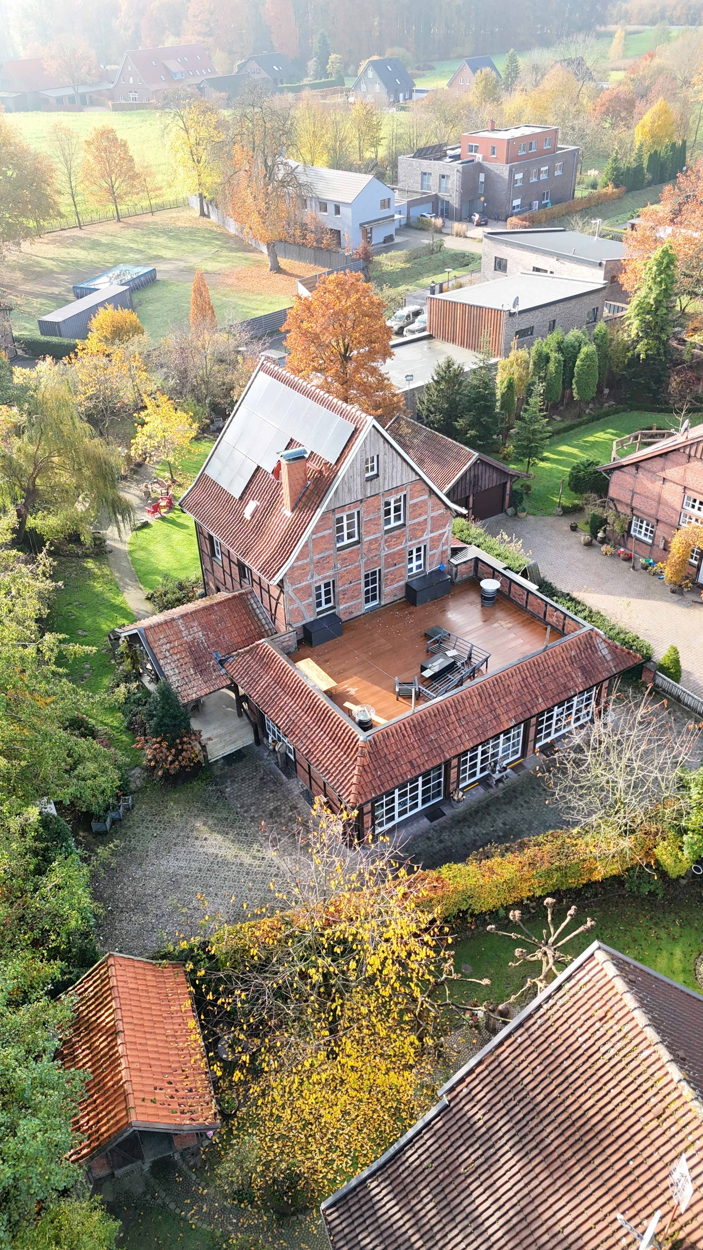 Die Immobilie befindet sich in einer gewachsenen, ruhigen Lage im Raum Münster-Wolbeck mit guter Anbindung an das Stadtgebiet Münster. Das Umfeld ist geprägt von großzügigen Grundstücken, viel Grün und einer angenehmen Nachbarschaftsstruktur.